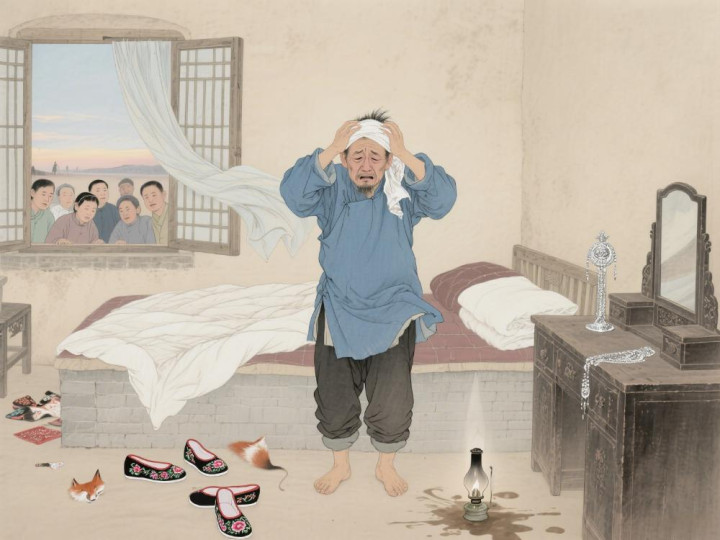 半推半就间,窗外狂风大作,飞沙走石。等刘老栓觉得不对踹开门,只剩窗户吱呀晃,哪还有人影?